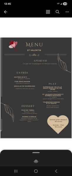 Menu spécial Saint Valentin